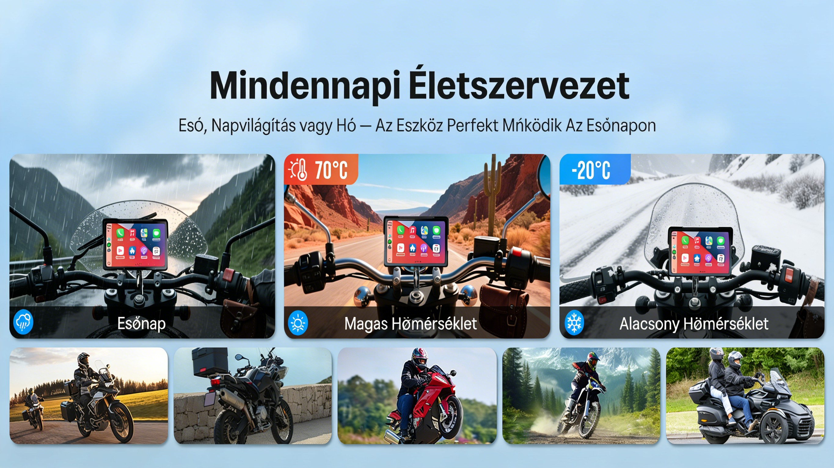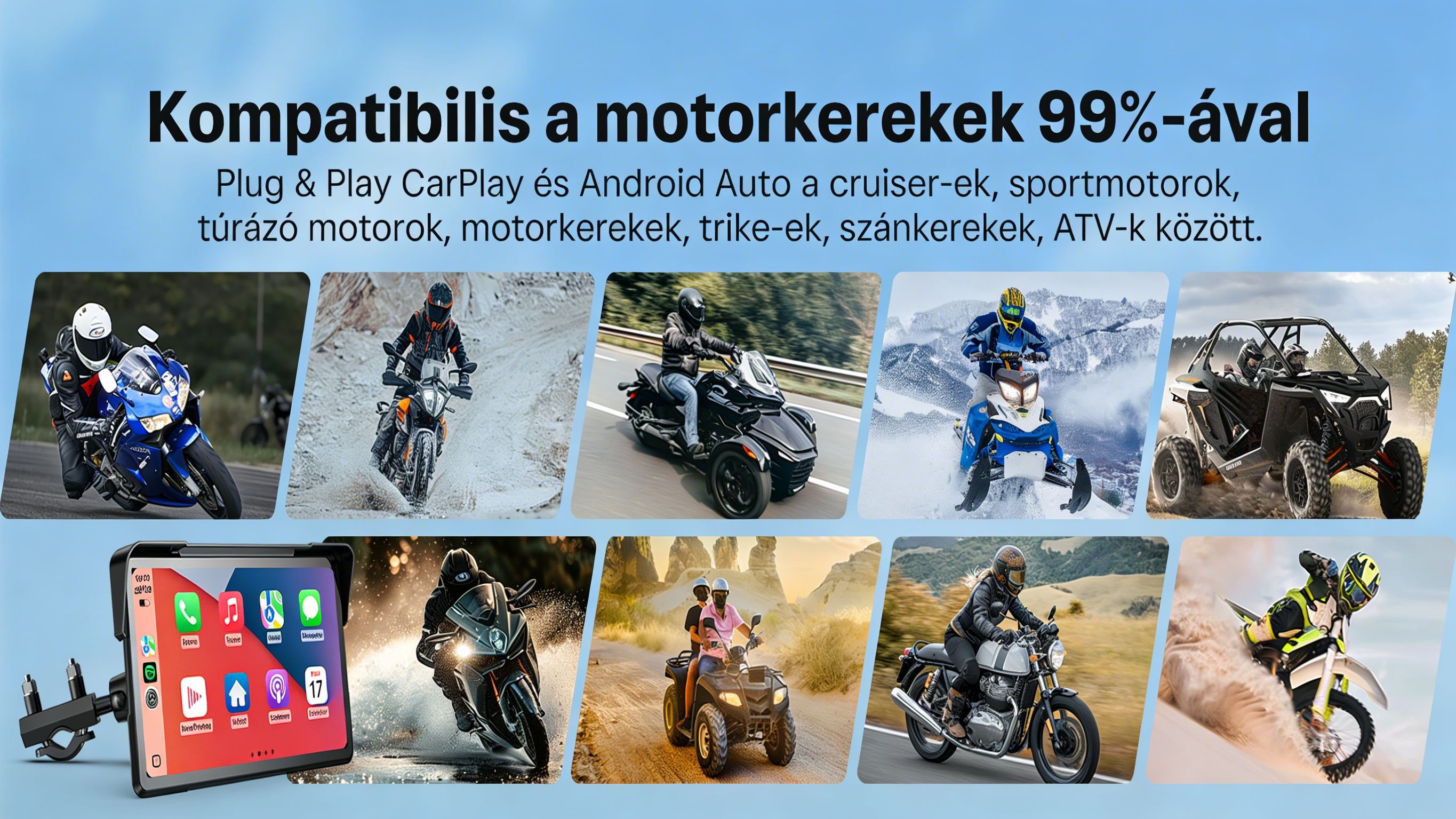 • Körülbelül 99%-os kompatibilitás motorkerékpárokkal,cruiserek, sportmotorok, túramotorok,off-road motorok, triciklik, ATV-k