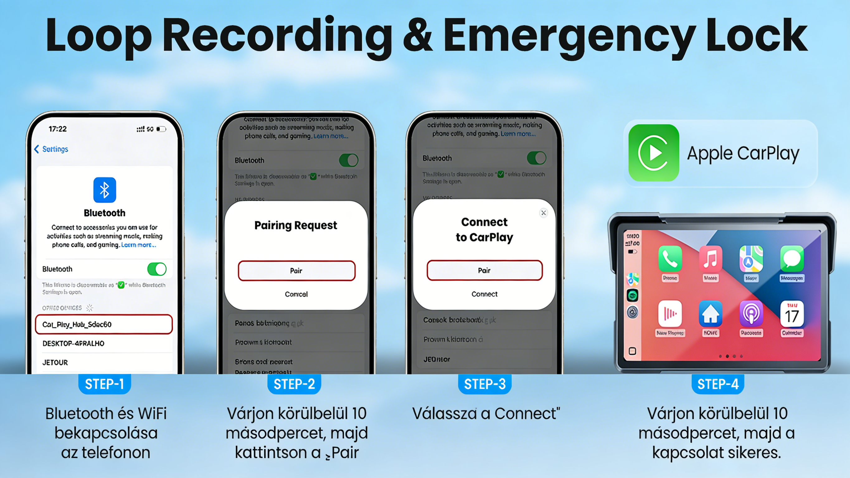 • Automatikus körforgásos felvétel, nincs szükség kézi kezelésre, az ütközés érzékelése vészvideót rögzít, a fontos felvételek automatikusan védve vannak, nem íródnak felül