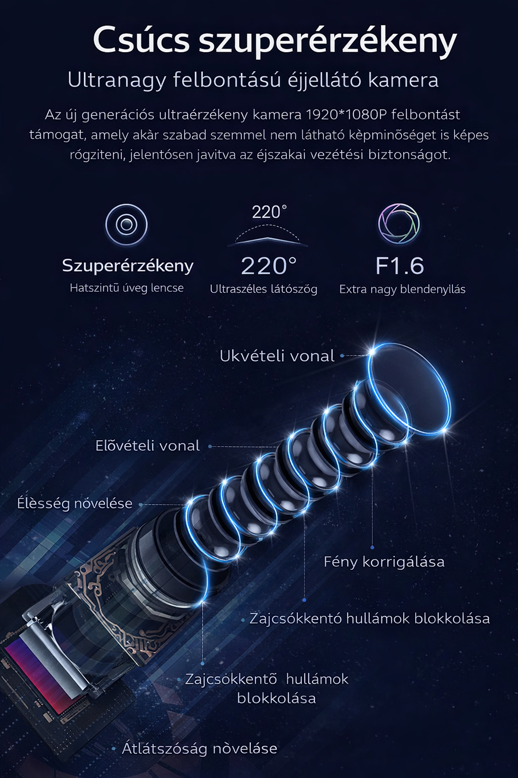 🌙 Csúcskategóriás nagy érzékenységű kamera