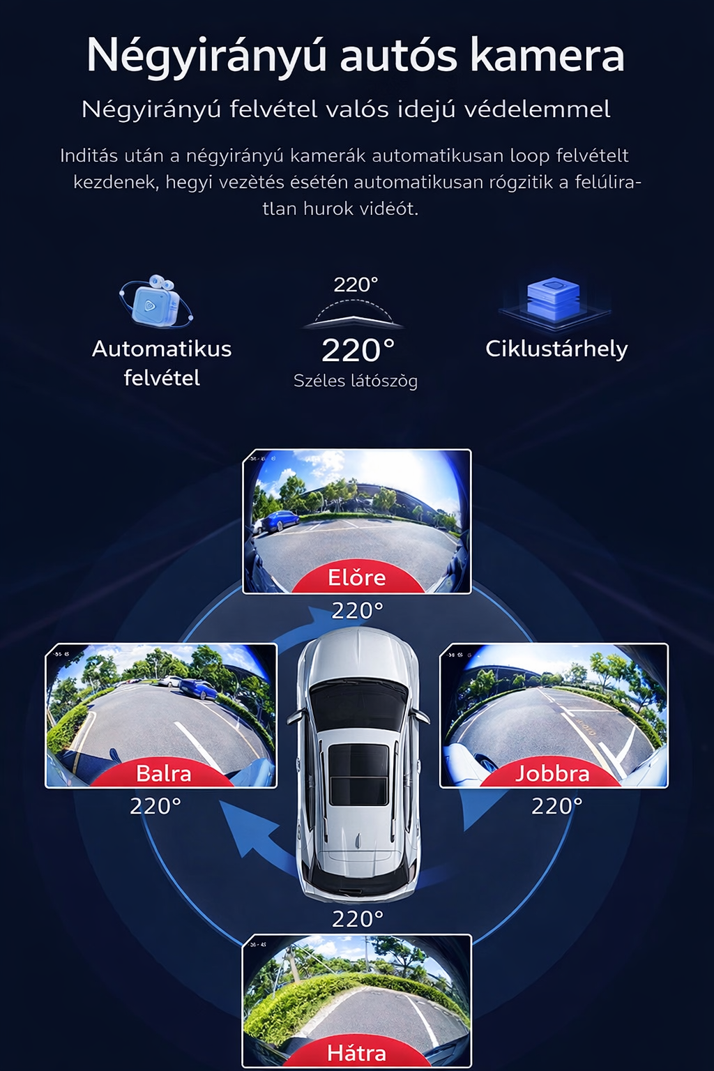 📹 Négycsatornás menetrögzítő kamera