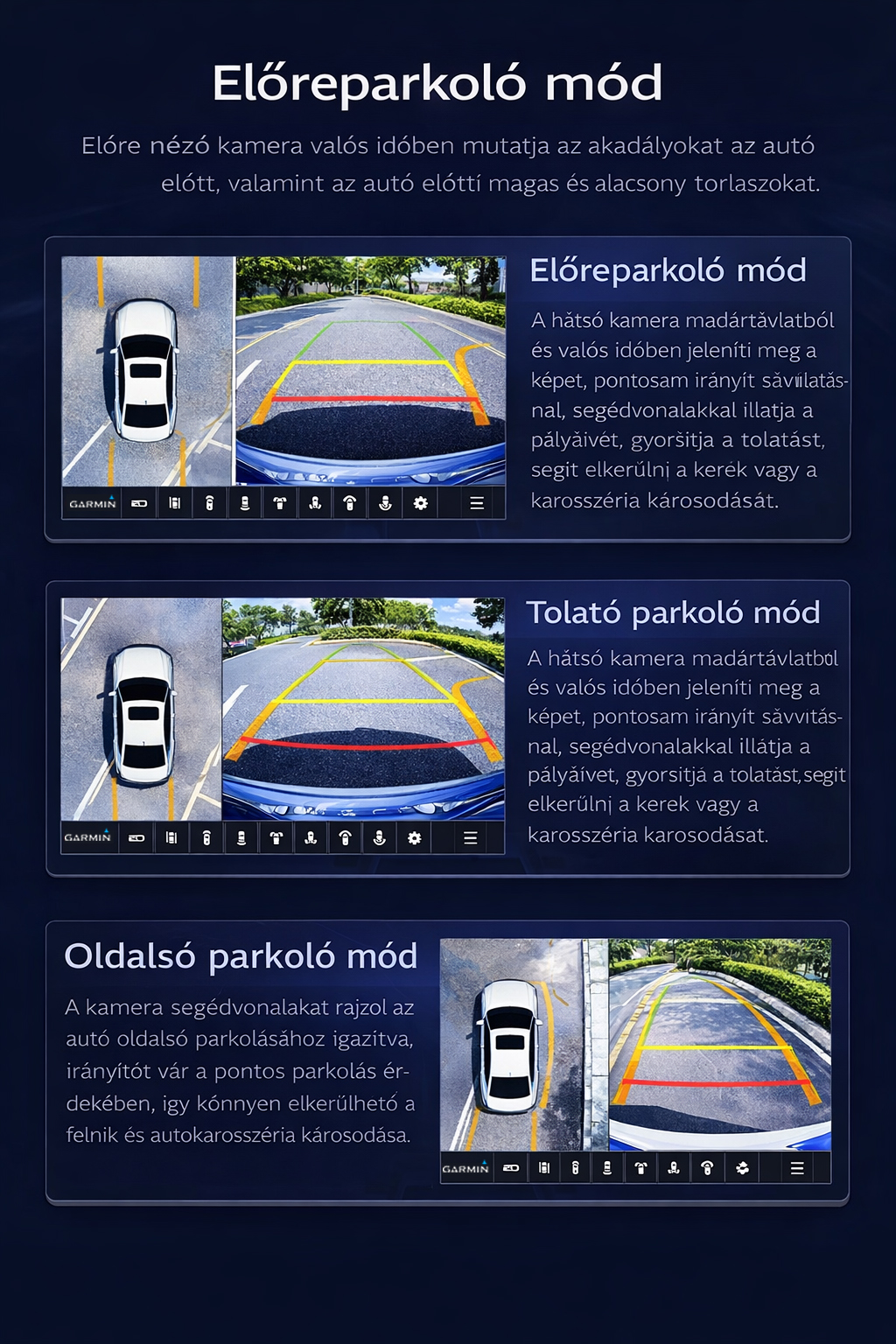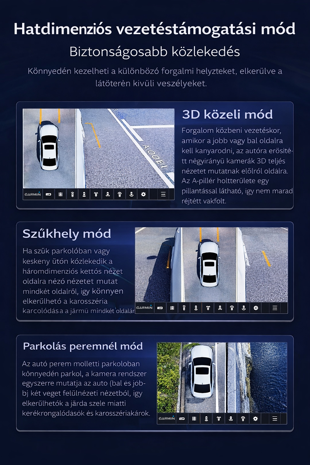 Hatdimenziós vezetéstámogatás, amely segít minden manővernél