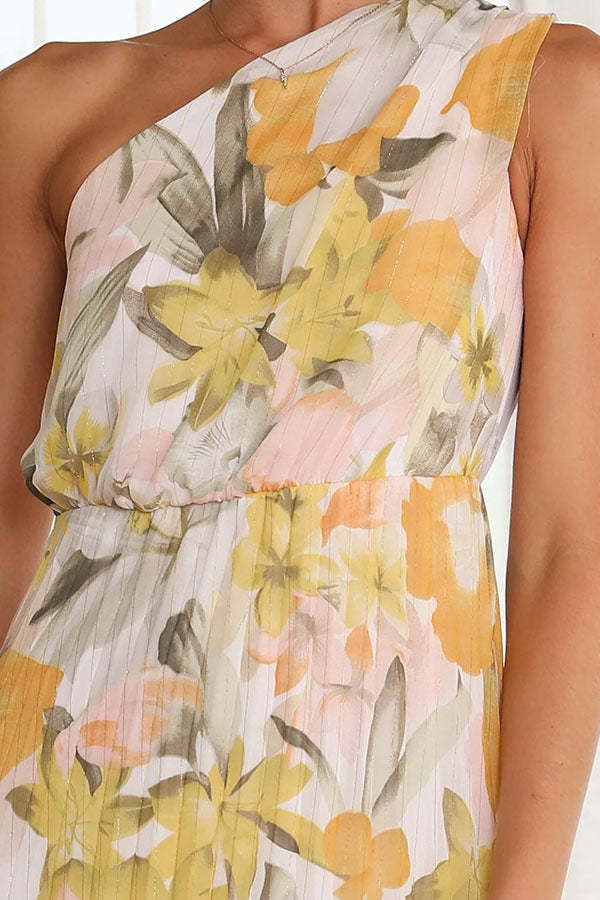Saw An Angel virágmintás, egyvállas, rugalmas derekú, rakott maxi ruha
